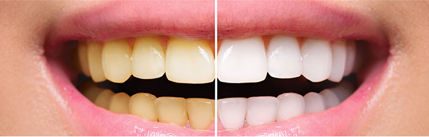 치아 신경의 괴사, 음식물로 인해 변색된 치아에 미백제나